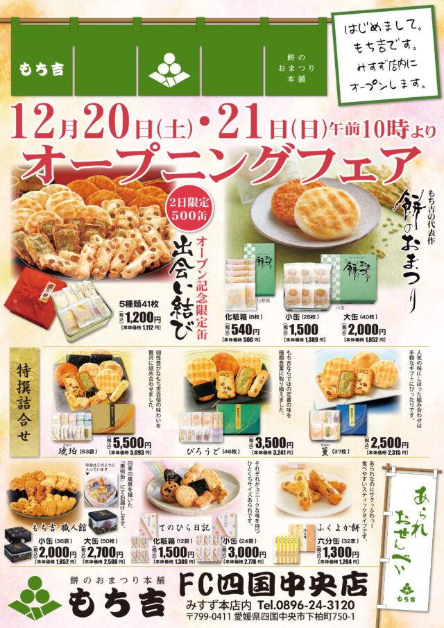 12月20日からは、みすず店内に新しく「もち吉」店舗もオープンします。