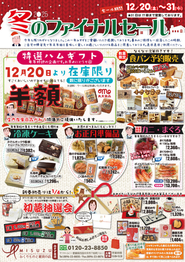 年末年始のご準備に、みすずのハム半額フェアご利用ください。